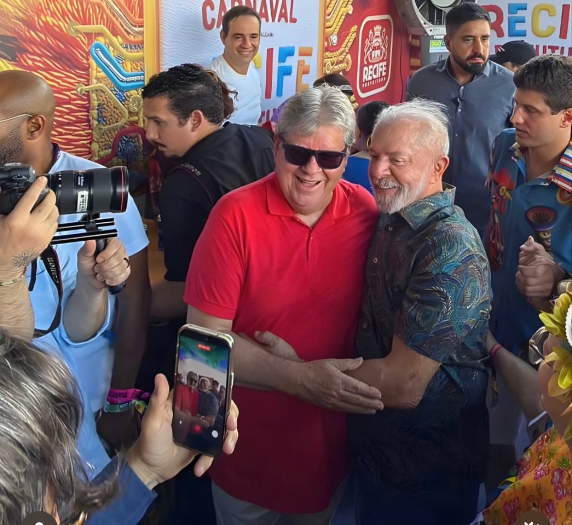 João Azevêdo se encontra com Lula durante desfile do Galo da Madrugada